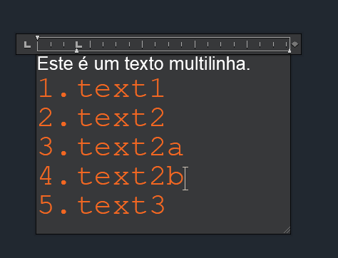 Para adicionar novos itens de lista após text2, coloque o cursor após text2 e pressione Enter.