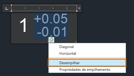 Para criar uma pilha de tolerância, insira um caractere numérico antes e depois de um acento circunflexo (^). Por exemplo, digite 1 +0,05^-0,01 e, em seguida, pressione a barra de espaços.