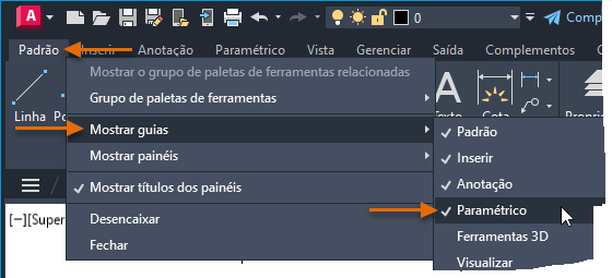 A marca de seleção na frente da guia Paramétrico agora deve ser removida e a guia deve estar oculta na interface.
