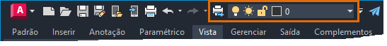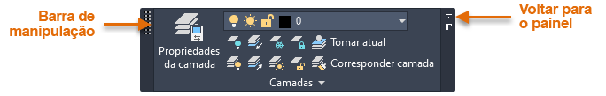 Os painéis em uma guia da faixa de opções podem ser tornados flutuantes na janela do aplicativo. Quando um painel da faixa de opções é flutuante, ele fica visível independentemente da guia da faixa de opções que estiver ativa. Isso pode ser muito vantajoso quando você alterna entre vários tipos diferentes de ferramentas com frequência. Por exemplo, você pode desejar tornar as camadas ou os painéis Propriedades flutuantes, para que estejam visíveis, mesmo quando as guias Inserir ou Anotar estiverem em primeiro plano.
