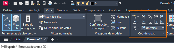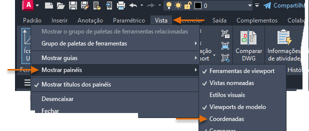 Neste exercício, você ocultará a guia da faixa de opções Paramétrico e exibirá o painel Coordenadas na guia Vista.
