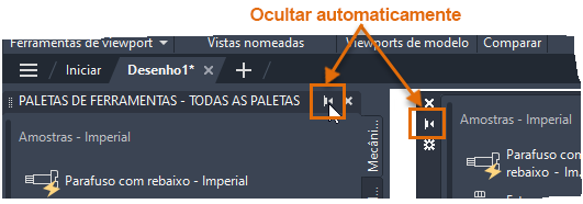 Mover o cursor sobre a paleta recolhida a expande temporariamente.