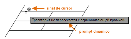 O AutoCAD exibe mensagens de erro ou notificações sobre o motivo pelo qual você não pode executar determinadas ações, normalmente na janela de comando. A visualização de comandos, com sinais de cursor e entrada dinâmica ativados, pode informar se a operação atual pode ser executada e qual pode ser o resultado sem precisar primeiro concluir o comando ou a ação esperada.