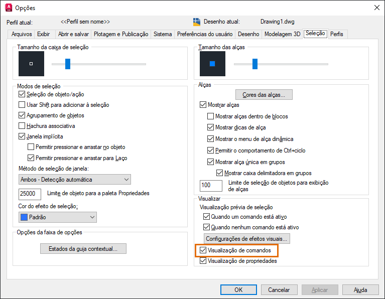 | COMMANDPREVIEW | Controla se uma visualização do possível resultado de alguns comandos é exibida. | 1 | Registro |