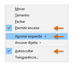 Observe que é possível redimensionar a largura de uma paleta ao exibi-la.