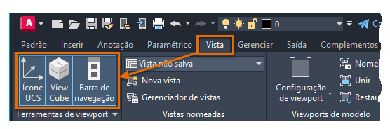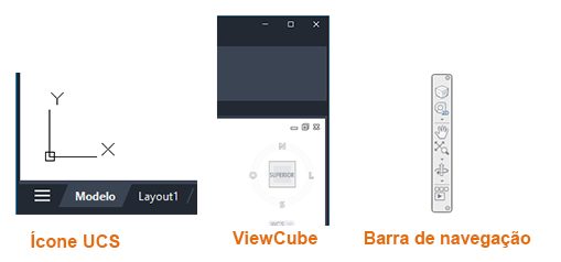 O sistema de coordenadas do usuário é útil em alguns desenhos 2D e essencial para a modelagem 3D. Se você não usar o UCS com frequência, será possível ocultá-lo facilmente. O mesmo se aplica ao controle do ViewCube e à barra de navegação.