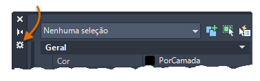 Propriedades e Gerenciador de propriedades de camada são duas das paletas de uso mais frequente. O encaixe dessas duas paletas junto com a opção Ocultar automaticamente é uma solução que oferece acesso instantâneo à rolagem em compensação pela perda de duas fatias da área de desenho.