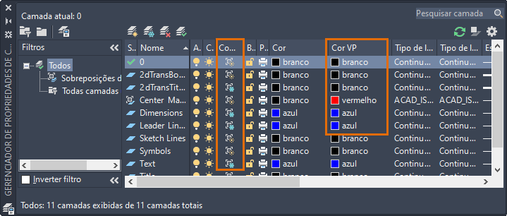 Insira o comando CAMADA para abrir o Gerenciador de propriedades de camada. Pesquisa