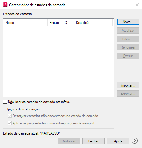 A caixa de diálogo Gerenciador de estados de camadas é exibida.