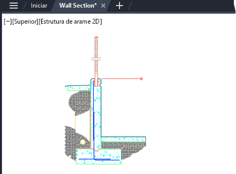 Veja a seguir um detalhe de uma parede de retenção no espaço do modelo. Você pode ter criado a geometria junto com outros detalhes em uma planta do terreno ou pode tê-la inserido como um bloco. De qualquer forma, você deseja exibi-la em uma viewport do layout com uma escala específica. Este exemplo usa uma escala padrão europeia para os detalhes padrão. Se desejar seguir um de seus próprios desenhos como exemplo, em vez disso, escolha as escalas que você geralmente usa.