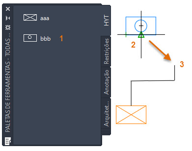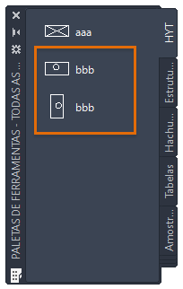 Exiba a janela Paletas de ferramentas clicando na guia Vista > painel Paletas > Paletas de ferramentas (ou inserindo o comando PALETASFERRAM).