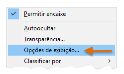 Clique com o botão direito do mouse dentro da paleta HYT. Escolha Opções de exibição no menu.