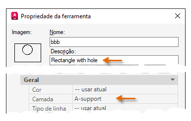 Insira uma descrição como Retângulo com X para aaa e Retângulo com furo para bbb. As descrições funcionam como dicas de ferramentas.