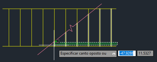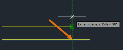 Usando o snap ao objeto INTersection, selecione a interseção da linha de quebra e a linha vertical.