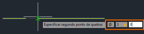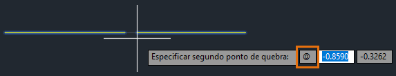No exemplo anterior, você usou o comando QUEBRAR para quebrar uma linha em dois segmentos com uma folga entre os dois pontos especificados. No próximo exemplo, você deverá inserir @ para quebrar uma linha em dois segmentos sem deixar folga.
