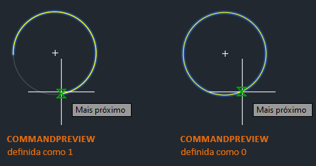 Certifique-se de que a variável de sistema COMMANDPREVIEW esteja definida como 1. Com a visualização do comando ativada, você verá uma visualização dos resultados durante o uso de um comando.