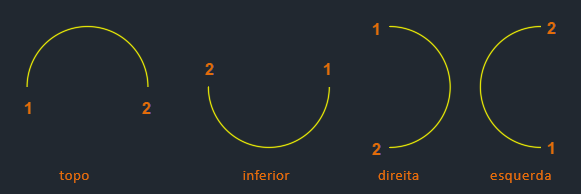 A ordem na qual você especifica os pontos em torno do círculo determina a direção da quebra; sentido horário vs. anti-horário.