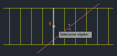 Como as linhas verticais são objetos de linha única, primeiro é preciso quebrá-las em um ponto específico antes de alterar a camada. É possível usar a interseção da linha de quebra e as linhas verticais como a localização da quebra.