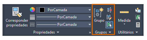Para desassociar os objetos, use o comando DESAGRUPAR e selecione um dos objetos no grupo. A associação de grupos é dissolvida.