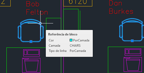 Suponha que você deseje alterar essas cadeiras da camada CADEIRA para a camada FURNITURE usando Altera para a camada atual.