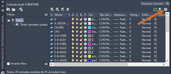 A camada FURNITURE agora é a camada atual.