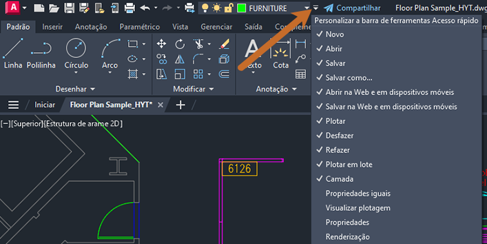 Suponha que você deseja tornar a camada FURNITURE atual. É claro, você poderia simplesmente abrir a lista de camadas e rolar até encontrar a camada FURNITURE. Mas, em vez disso, vamos usar Tornar atual para alterar rapidamente a camada atual.