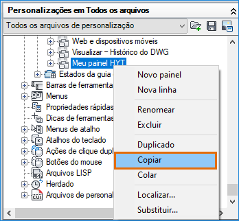 No nó Painéis, clique com o botão direito do mouse em Meu painel HYT e selecione Copiar.