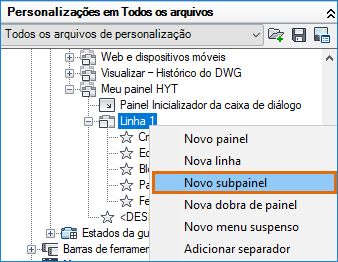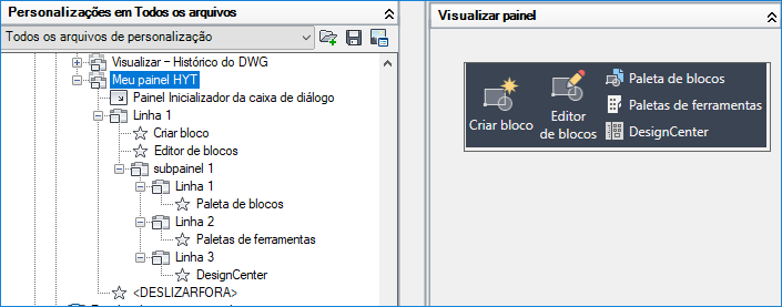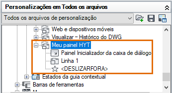No editor CUI, localize o painel da faixa de opções recém-criado (Meu painel HYT), se necessário.