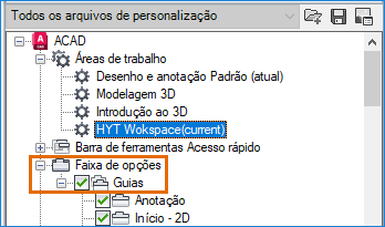 A Minha guia HYT é adicionada ao nó Guias da faixa de opções no painel Conteúdo da área de trabalho.