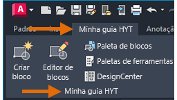 Neste exercício, você vai adicionar cinco comandos relacionados a blocos ao painel da faixa de opções que acabou de adicionar, Meu painel HYT.
