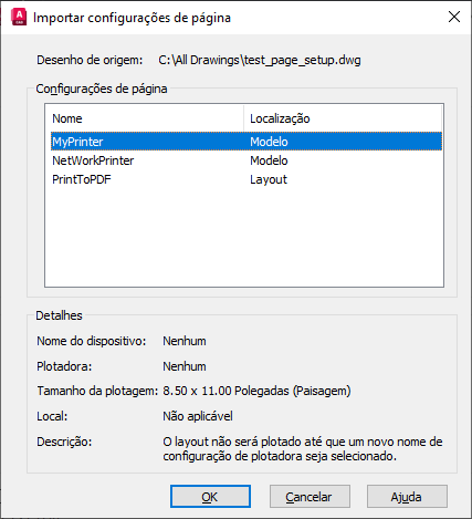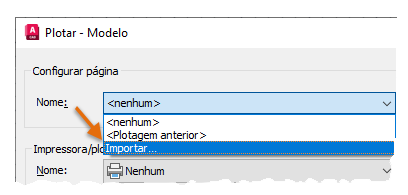 Nota: É possível reduzir o número de vezes que é preciso importar configurações de página adicionando as configurações de página nomeadas aos arquivos de template de desenho. Assim, elas serão disponibilizadas automaticamente para todos os novos desenhos baseados nesses templates.
