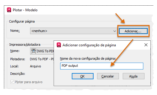 Quando você adiciona uma configuração de página na caixa de diálogo Plotar, está salvando um instantâneo de todas as configurações de plotagem e atribuindo-lhes um nome.