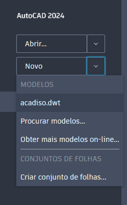 A Autodesk fornece diversos modelos que são instalados com o AutoCAD. É possível acessar esses modelos na guia Iniciar na lista suspensa Modelos.