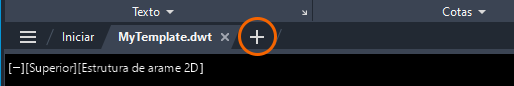 Uma forma fácil de testar as alterações no modelo é primeiro salvá-lo e, em seguida, clicar em + nas guias de desenho para criar um novo desenho. Manter o modelo aberto para teste faz com que as alterações no modelo sejam muito rápidas.