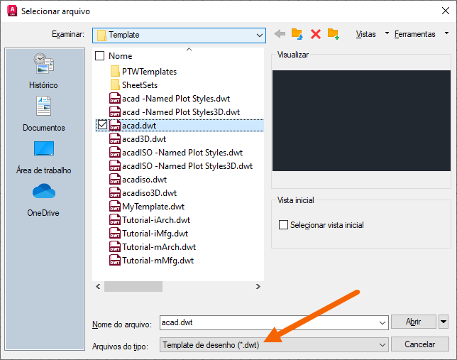 Você deve ver os modelos instalados com o AutoCAD.