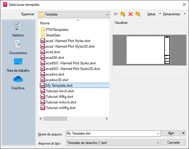 Agora, quando você iniciar um novo desenho, o AutoCAD usará o MyTemplate.