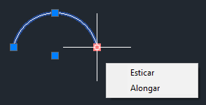 Tente essas mesmas etapas com arcos, círculos e polilinhas, selecionando diferentes alças nos vários objetos.