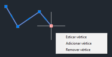 Passe o cursor sobre uma das alças finais para ver o menu de alça.