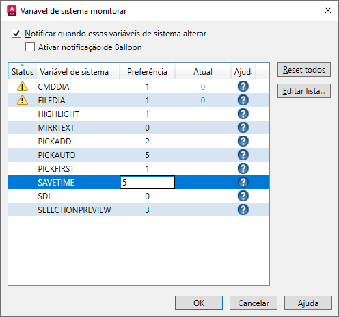 Em vez de resolver esses problemas caso a caso, e se você pudesse manter certas variáveis de sistema sob observação e ser notificado de qualquer alteração? Bem, você está com sorte. No AutoCAD 2016, introduzimos o Monitoramento de variáveis de sistema, que foi projetado para oferecer esse recurso.