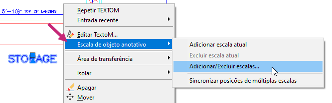 As etapas a seguir explicam como adicionar escalas de anotação ao objeto anotativo TextoM criado no exercício anterior: