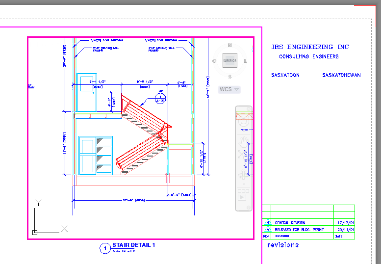 Você deve observar que o objeto TextoM agora aparece na viewport SEÇÃO DA ESCADA 1 e é exibido em uma altura de texto de papel de 1/16" com base na escala da viewport 1/4"=1'-0".