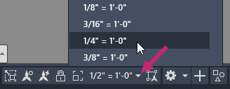 A escala anterior da viewport é restaurada junto com a visibilidade dos objetos anotativos com uma escala de anotação de 1/2"=1'-0".