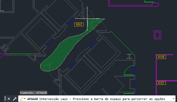Observe que a linha de comando indica que você está usando atualmente um laço de interseção, o que significa que qualquer elemento que fizer interseção ou estiver incluído no laço será selecionado.
