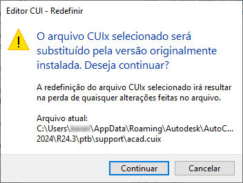 Se não estiver satisfeito com as alterações feitas, será possível restaurar o arquivo CUIx para seu estado salvo anterior ou para os padrões do programa.