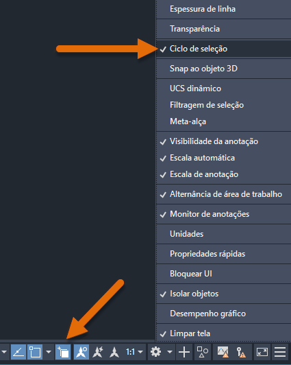 Primeiro, vamos garantir que o ciclo de seleção esteja visível na barra de status ( Pesquisa).