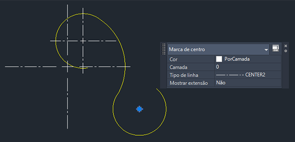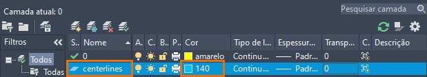 Quando uma linha de centro ou marca de centro é criada, ela será colocada na camada de linhas de centro, independentemente da camada atual.