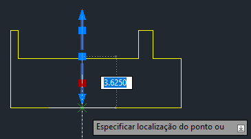 As marcas de centro e as linhas de centro também podem ser editadas usando alças. Se passar o cursor sobre uma alça, serão exibidas as cotas dinâmicas da linha de extensão.