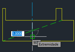 Vamos usar o comando LINHACENTRO e selecionar a linha 1 e a linha 2 para criar uma linha de centro. Observe que a linha de centro não se estendeu além da parte inferior do projeto. Isso é porque as linhas selecionadas para a linha de centro não têm o mesmo comprimento.