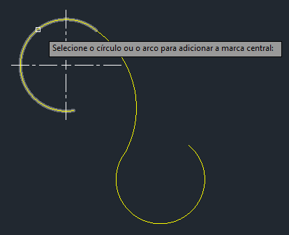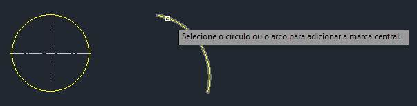 Para um arco ou círculo, você poderia usar o comando COTACENTRO, mas ele pode ser limitado. Ou talvez você tenha criado um bloco para marcas de centro e redimensionado o bloco conforme necessário, o que também tem seus limites e pode ser demorado.