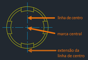 | CENTERCROSSGAP | Determina a folga entre a marca de centro e as suas linhas de centro. | "0.05x" | Desenho |